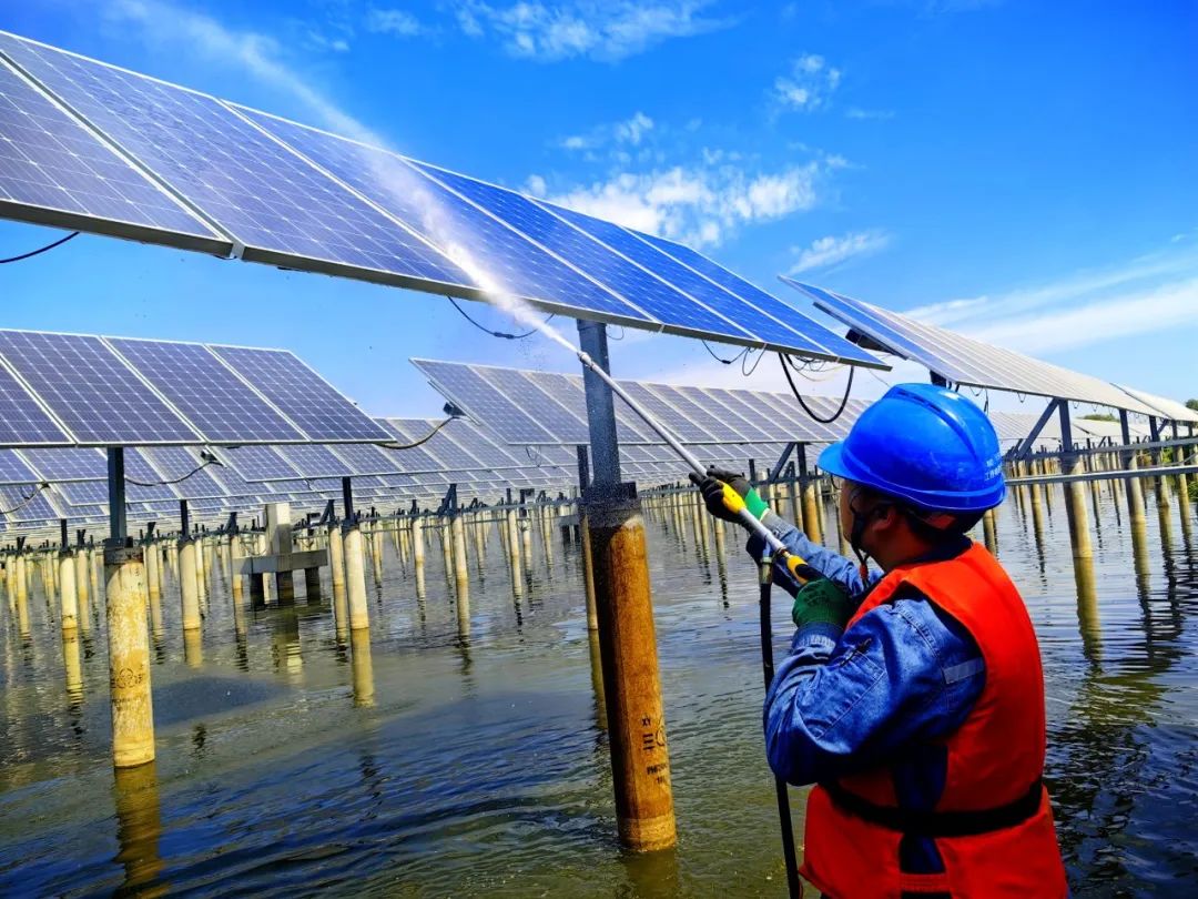 進(jìn)行光伏組件清洗工作